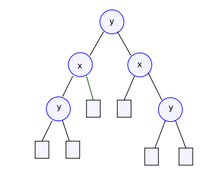 - Dastlab nuqtalar y o'qiga perpendikulyar tarzda (gorizontal chiziq) bo'lingani uchun, root node'ning key'i - y bo'ladi.