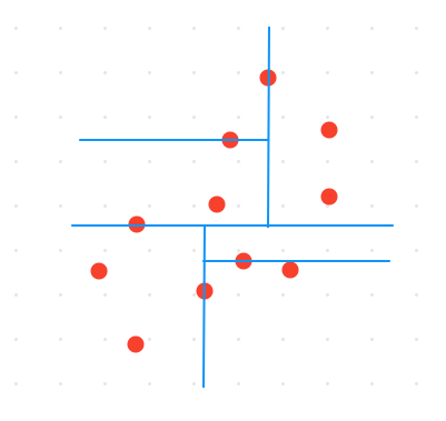 Xulosa qilib, kartani kataklarga bo'lib yuborish kam hollardagina samara berar ekan. Biz nuqtalarni karta yuzasi bo'yicha emas, soni bo'yicha bo'lib yuboramiz - 2D tree.