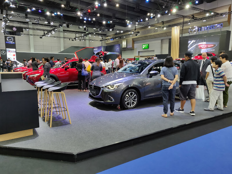 Mersedes pavilyoni eng katta joyni egallagan. Hodimlari ham erinmay tushuntirishadi. Aslida Tayland yo'llarida yapon avtomobillari orasida "yevropaliklardan" Mersedes ko'p uchraydi. Mersedes statusni aniqlab beradigan mashina.