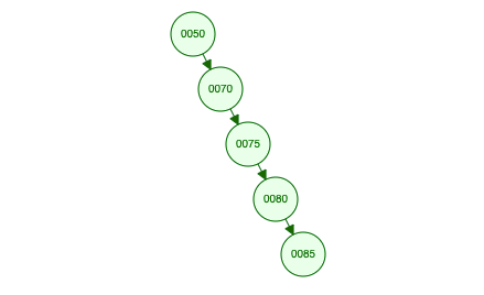 - 7 > 5, node'ning o'ng tarafida davom ettiramiz.