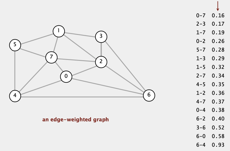graph[ null, Map { 'v': 0, 'w': 7, 'weight': 0.16 } ] // graph[0] = empty