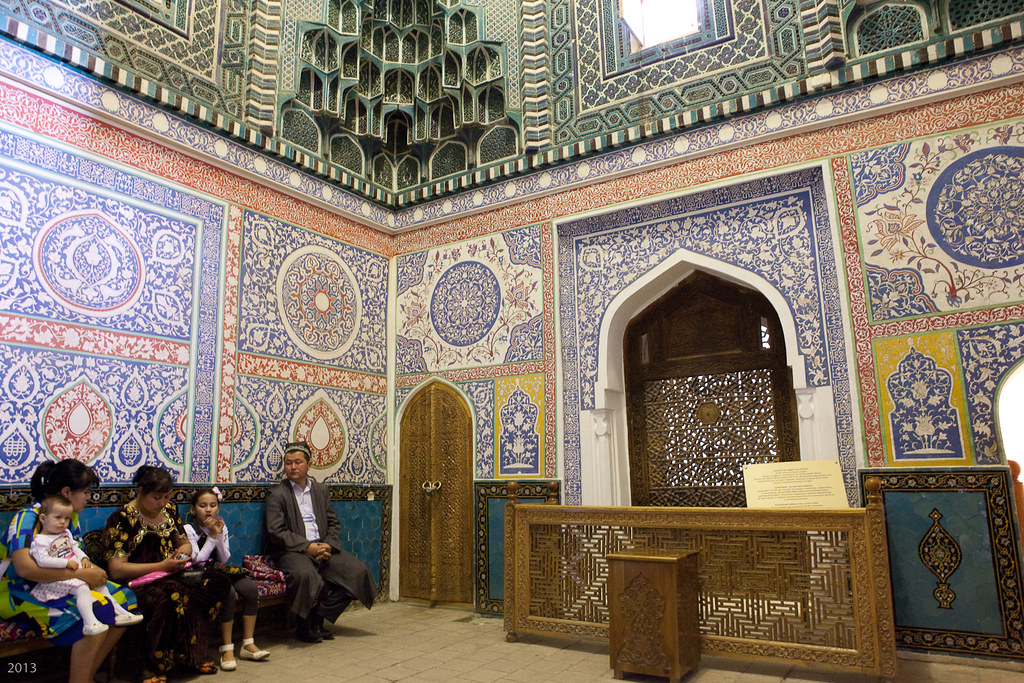 Binoga qarang. Har xil naqshlar, shundaymi? Aslida ular kalligrafiya. Ular Qur’on oyatlari, hadislar, duolar bo’lishi mumkin. Men faqat qisqalarini o’qiy oldim xolos, masalan «Alloh», «Allohu akbar», «Muhammad»…